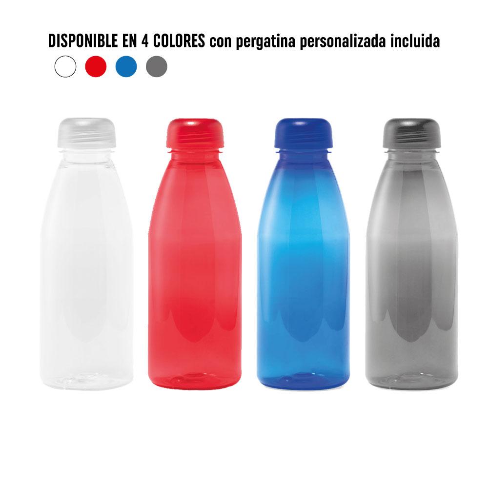Bidón GRATIS incluido, disponible en 4 colores (blanco, azul, rojo o gris) con pegatina personalizada rodeando toda la botella. Botella de 550 ml de capacidad en material tritán, resistente al calor y libre de BPA. Con tapón a rosca de seguridad.
