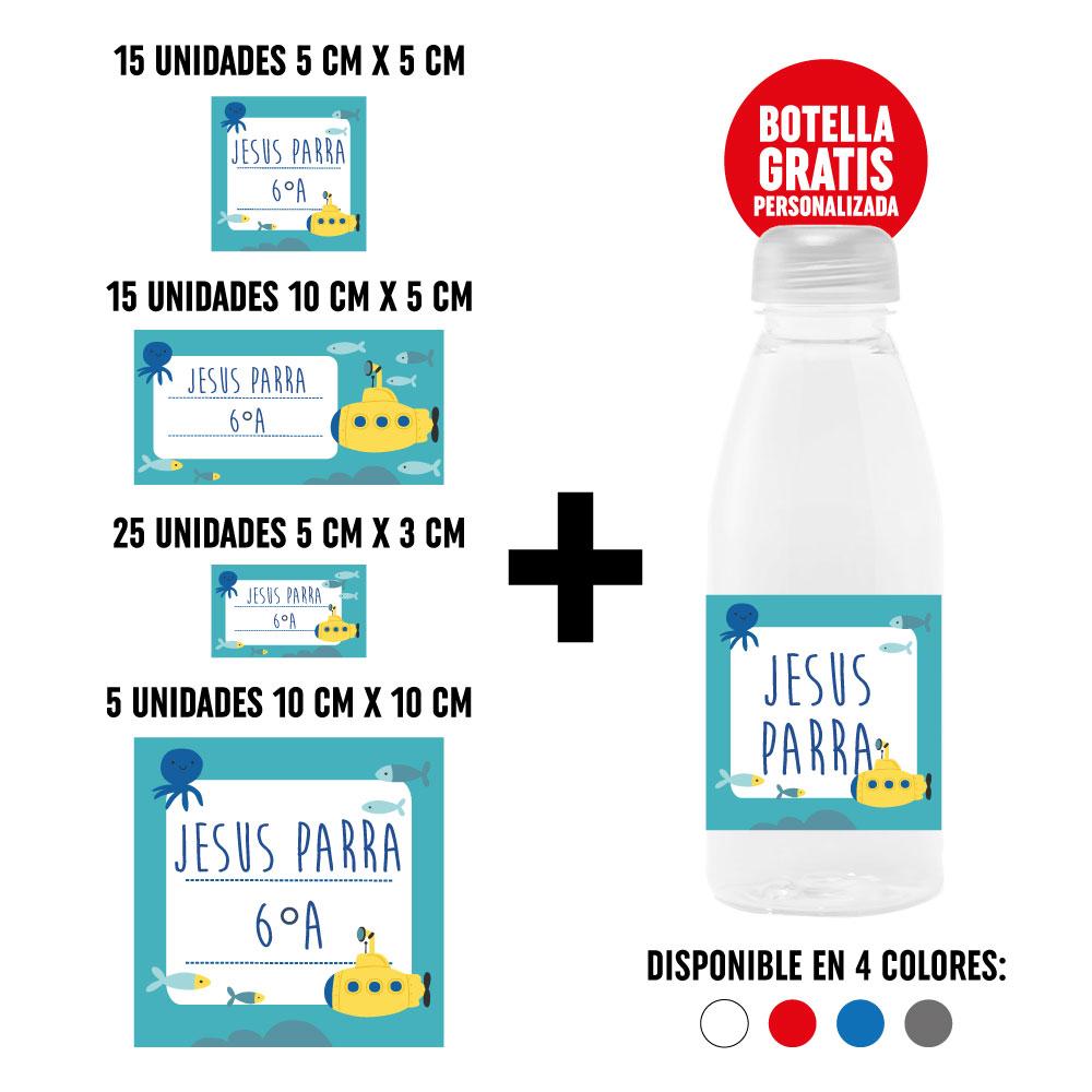 Pack 60 Pegatinas Personalizadas con Botella de Regalo - Submarino