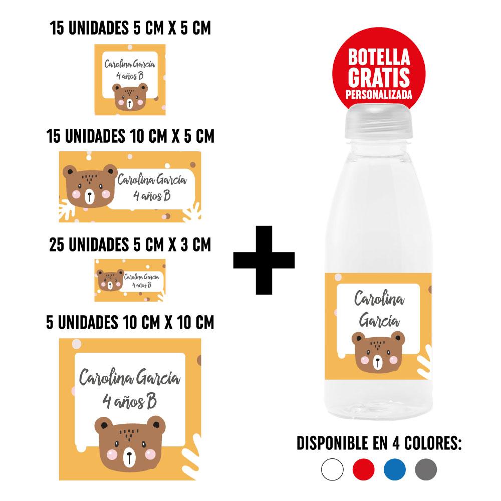 Pack 60 Pegatinas Personalizadas con Botella de Regalo - Oso