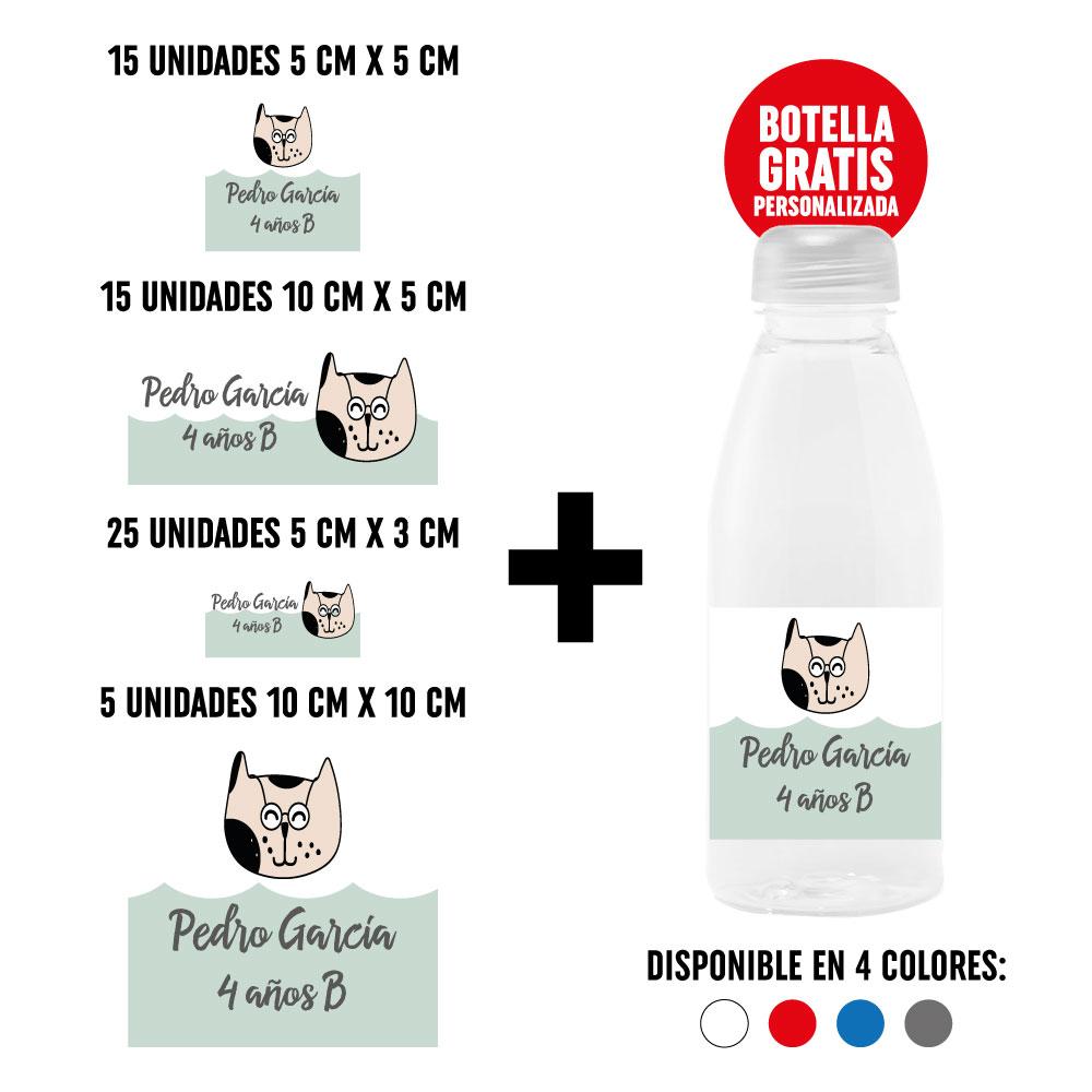 Pack 60 Pegatinas Personalizadas con Botella de Regalo - Animales Gatito 1