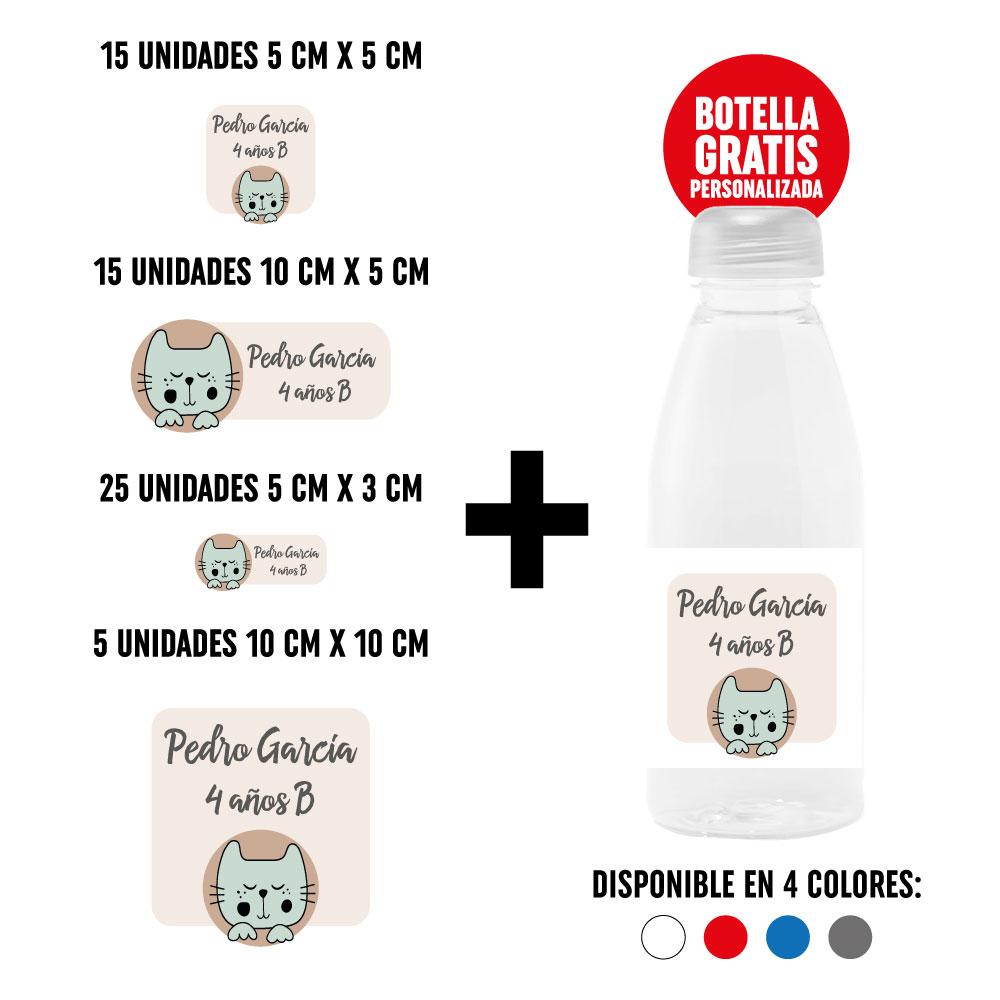 Pack 60 Pegatinas Personalizadas con Botella de Regalo - Animales Gatito 2