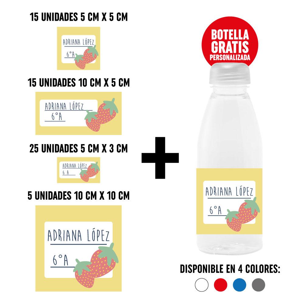 Pack 60 Pegatinas Personalizadas con Botella de Regalo - Fresas
