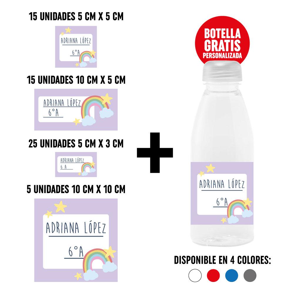 Pack 60 Pegatinas Personalizadas con Botella de Regalo - Arcoiris