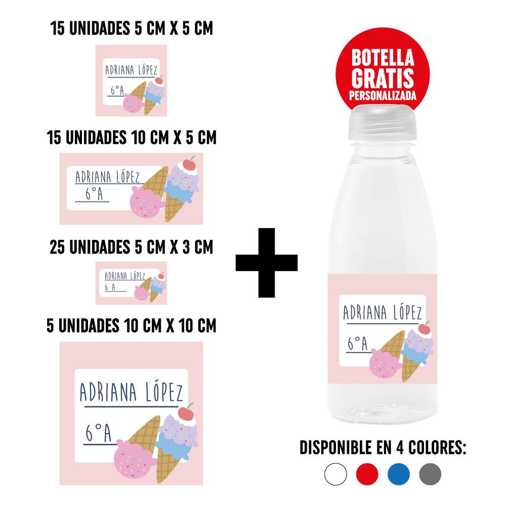 Pack 60 Pegatinas Personalizadas con Botella de Regalo - Helados