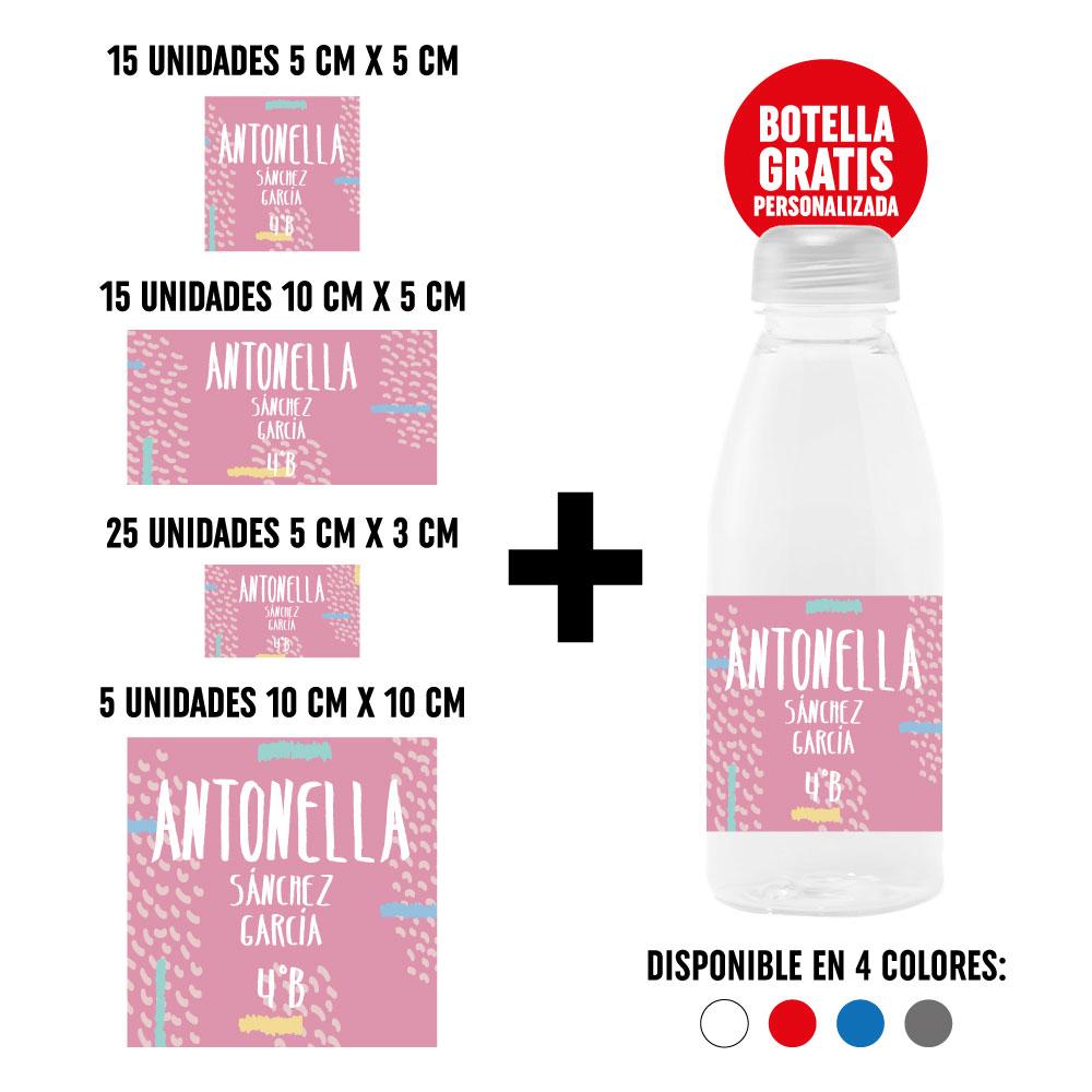 Pack 60 Pegatinas Personalizadas con Botella de Regalo - Rosa Mod 1