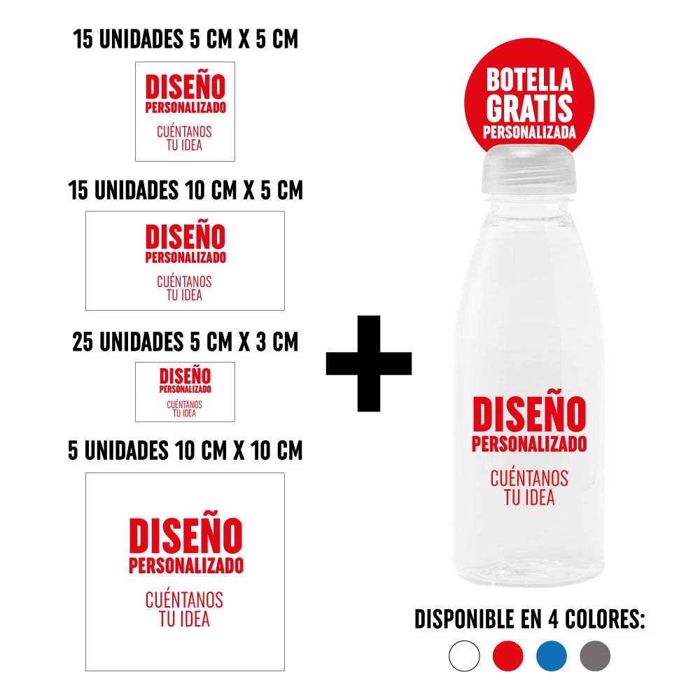 Pack 60 Pegatinas Personalizadas con Botella de Regalo - Personalizada a tu gusto