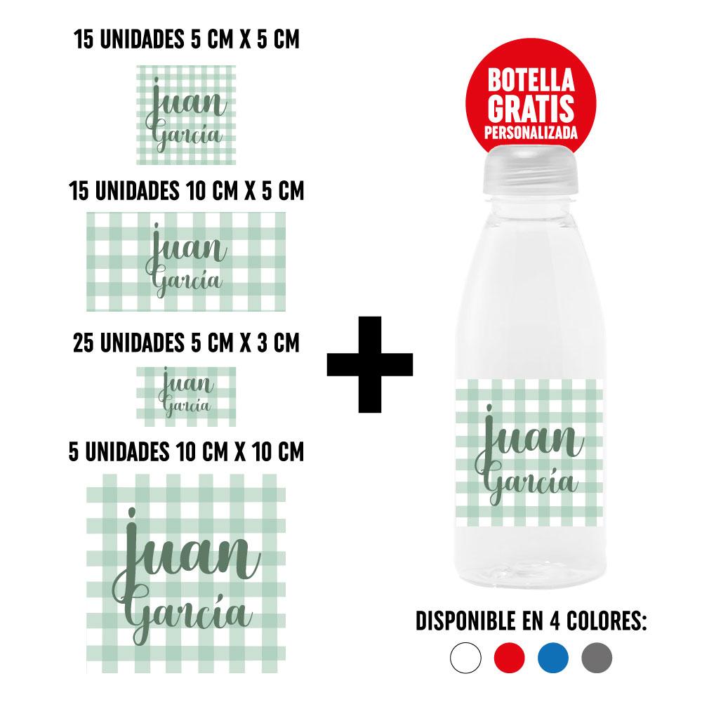 Pack 60 Pegatinas Personalizadas con Botella de Regalo - Cuadros Vichy Verde