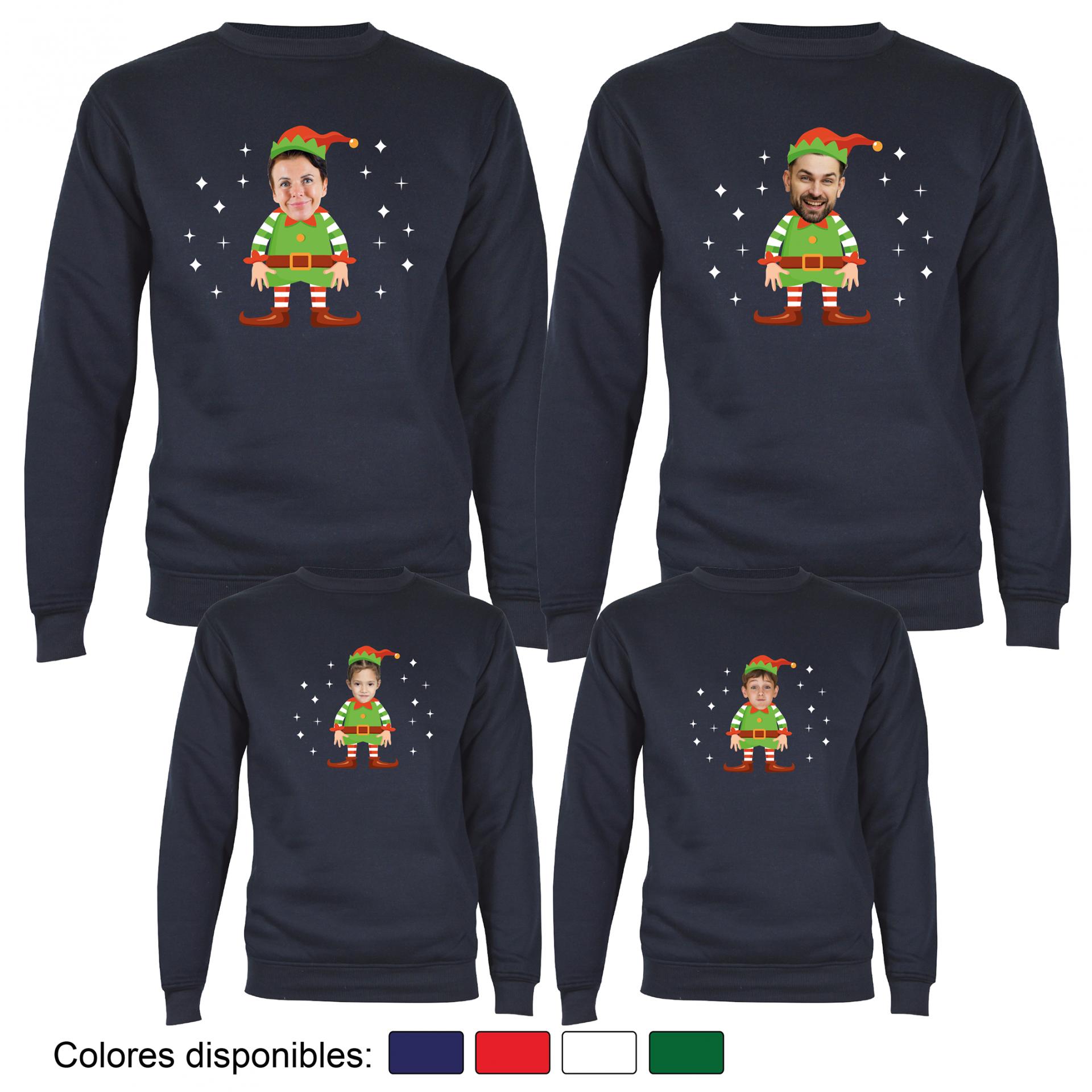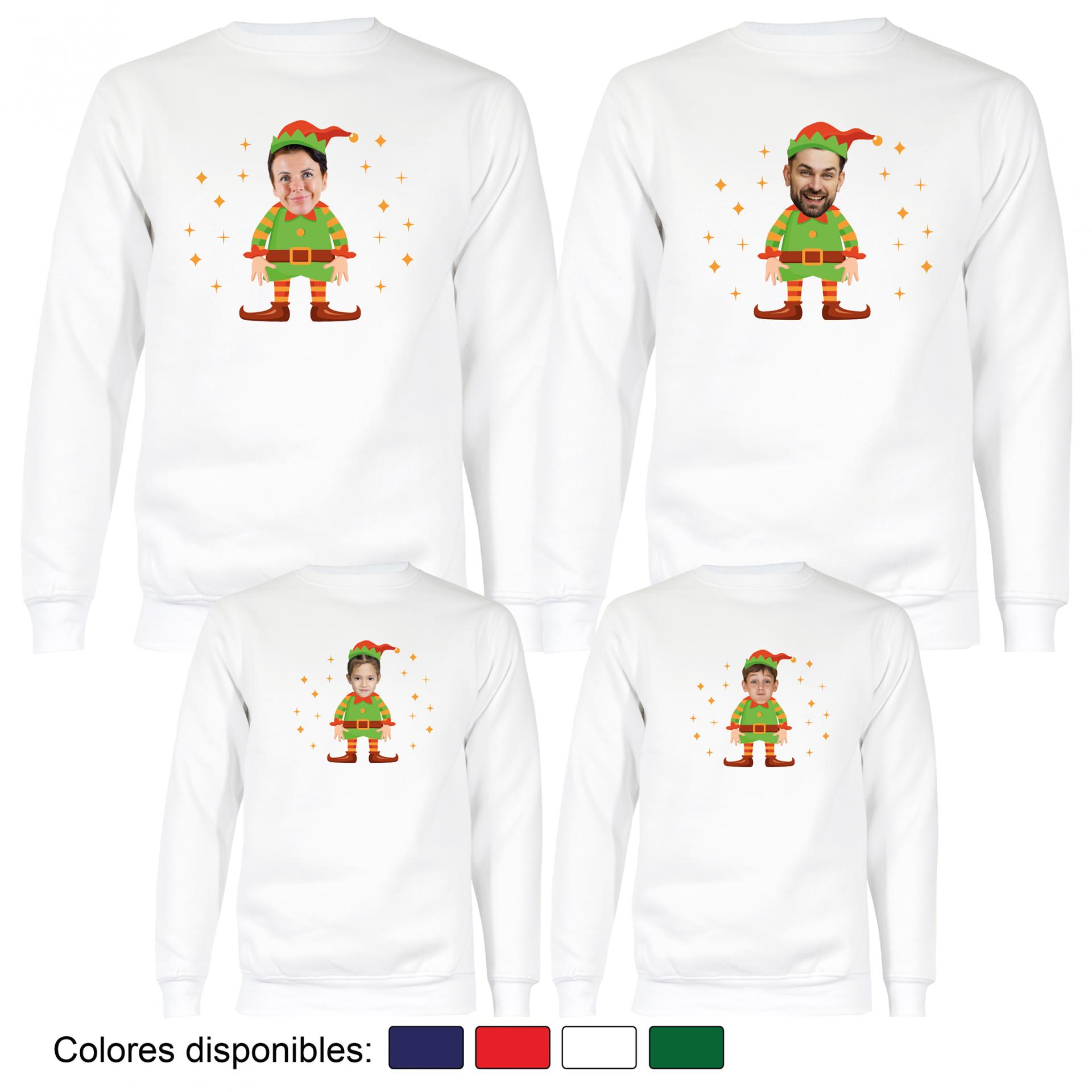 4 Sudaderas Navidad Cuerpo de Elfo con Cara Real