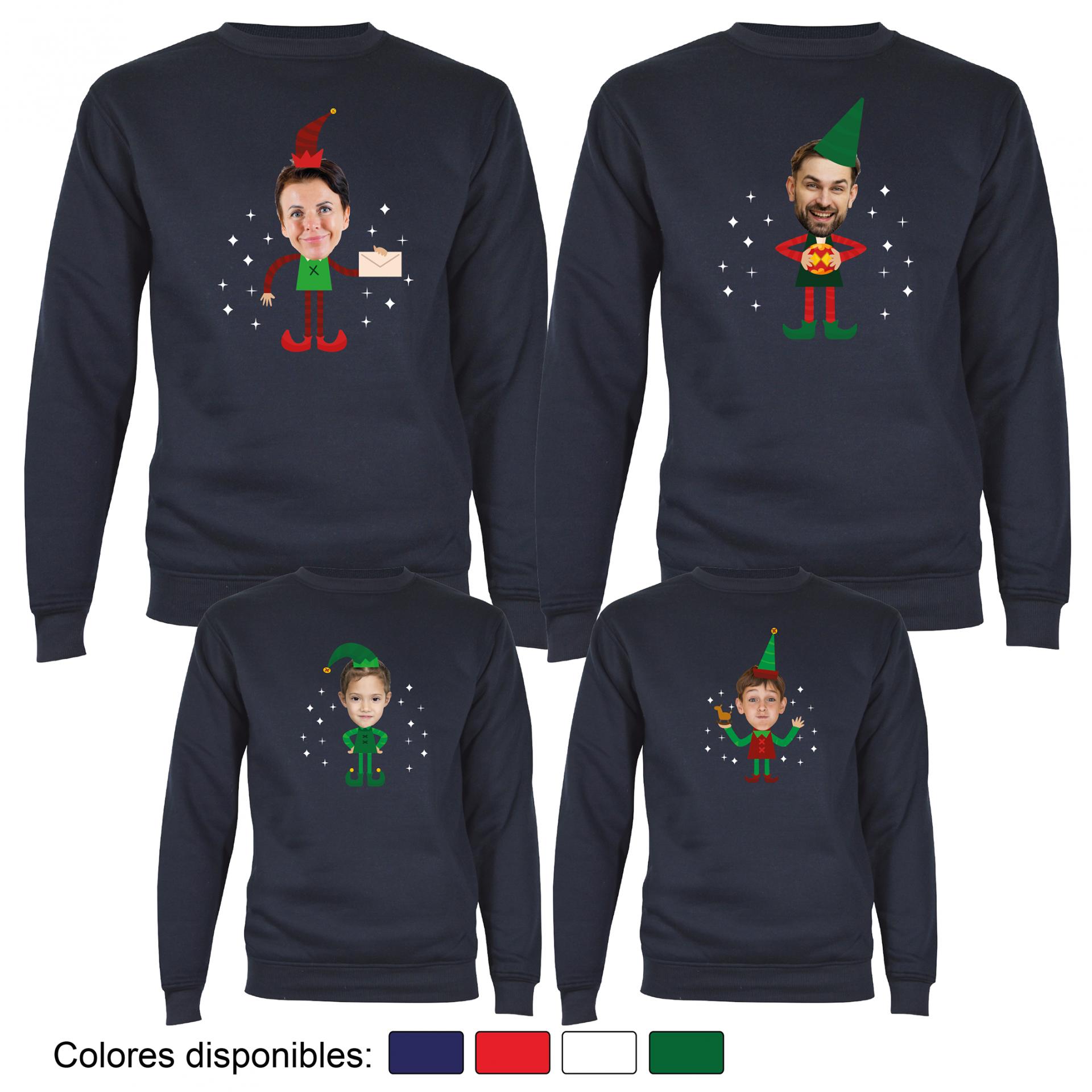4 Sudaderas Navidad Cuerpo de Elfo con Cara Real