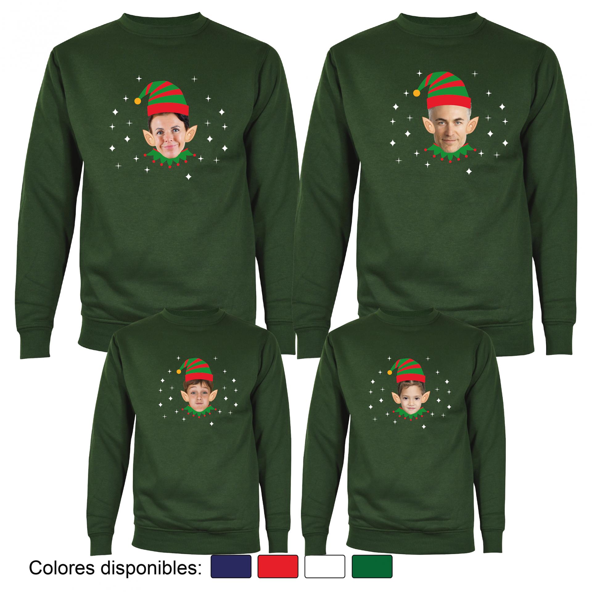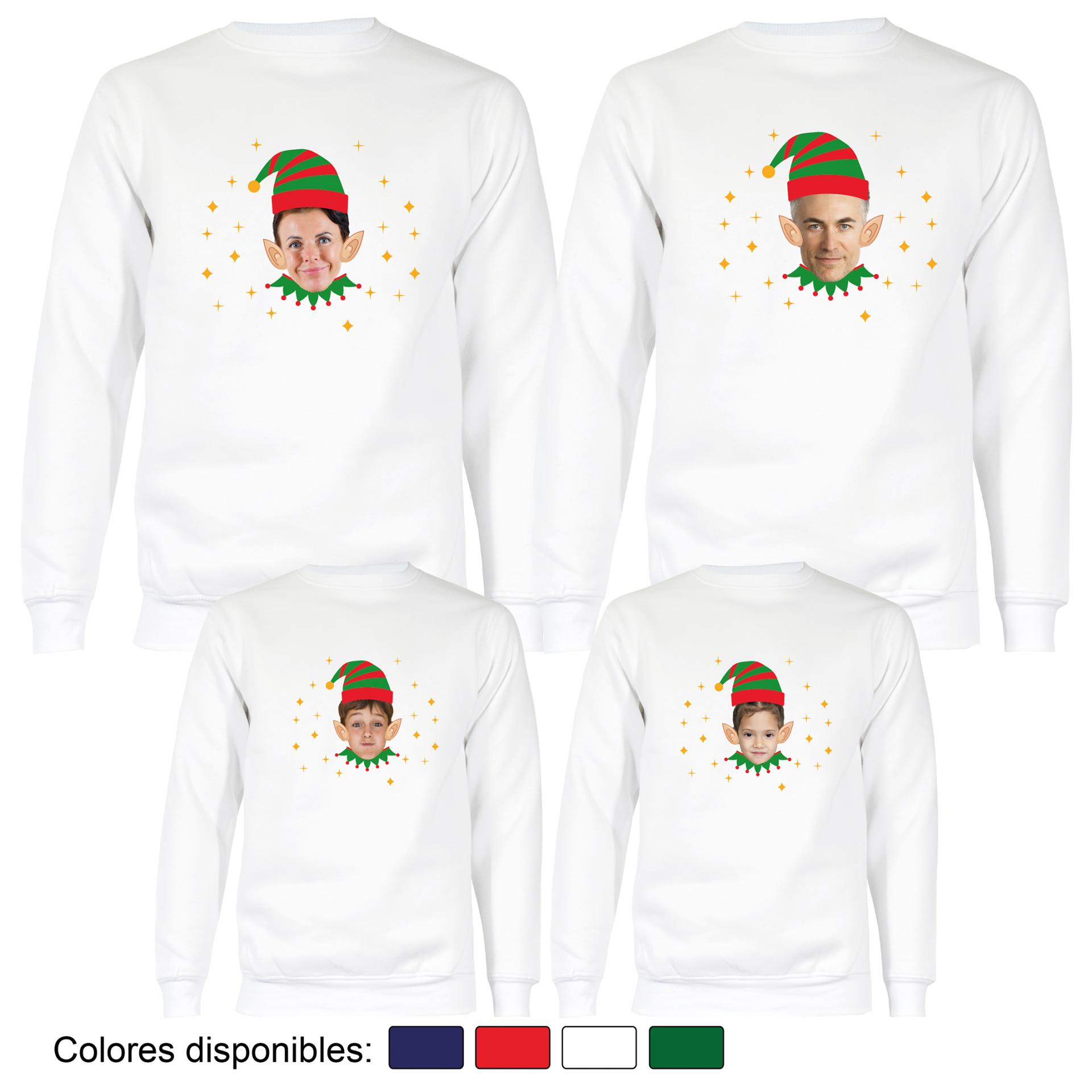 Características de: 4 Sudaderas Navidad Elfo con Cara Real