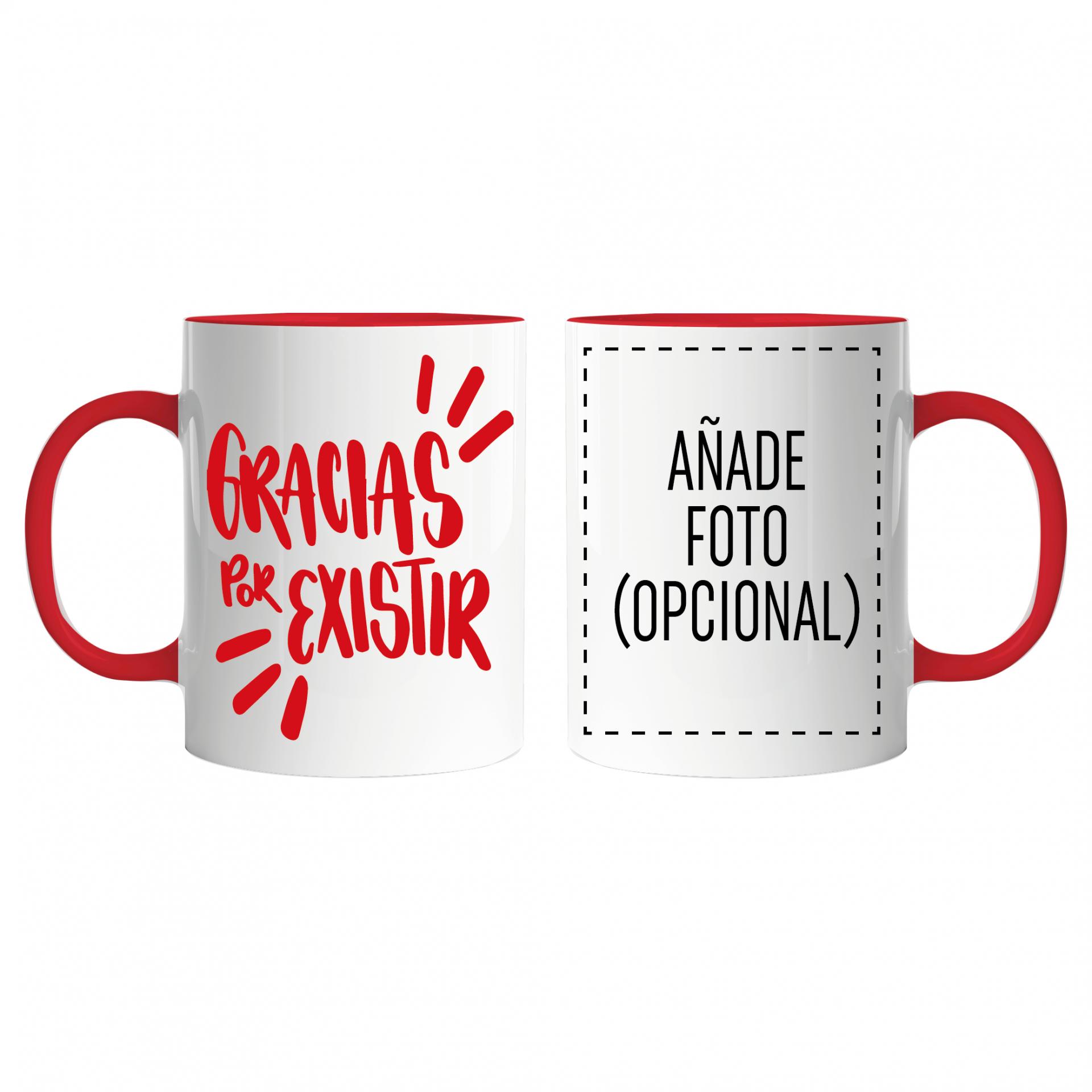 Taza bicolor blanca y roja de cerámica de alta calidad impresa a una cara, o a dos caras con foto (opcional).
