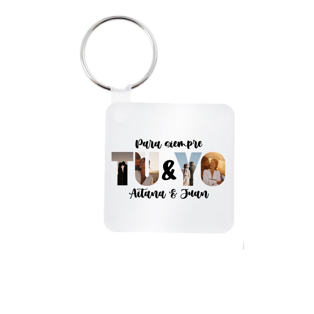 Llavero Madera Personalizado Tu y Yo con Fotos y Nombres