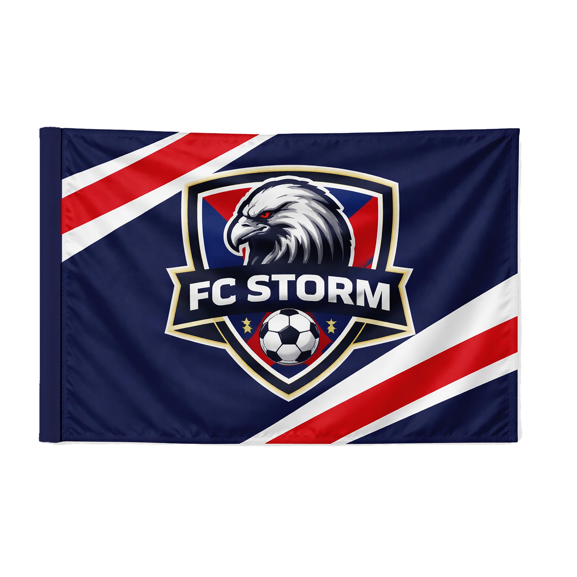 Bandera horizontal personalizada en un tejido de poliéster de 115 g/m² con alta resistencia, lo que garantiza una gran durabilidad. La impresión se efectúa a una sola cara, pero gracias a las propiedades del material, el diseño se aprecia también por el reverso con un efecto espejo que simula la transparencia.